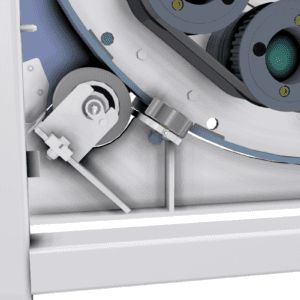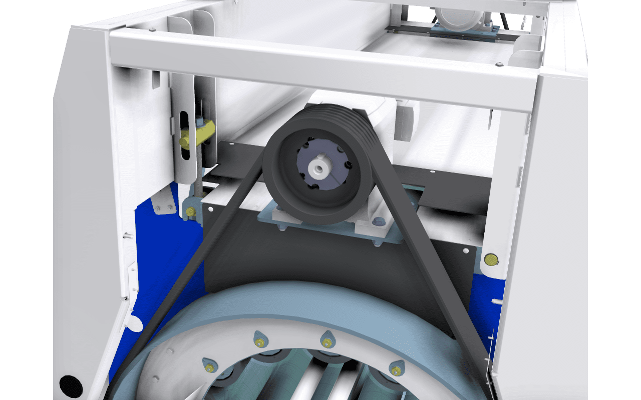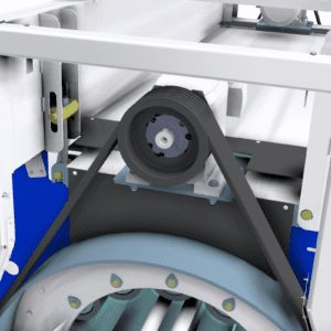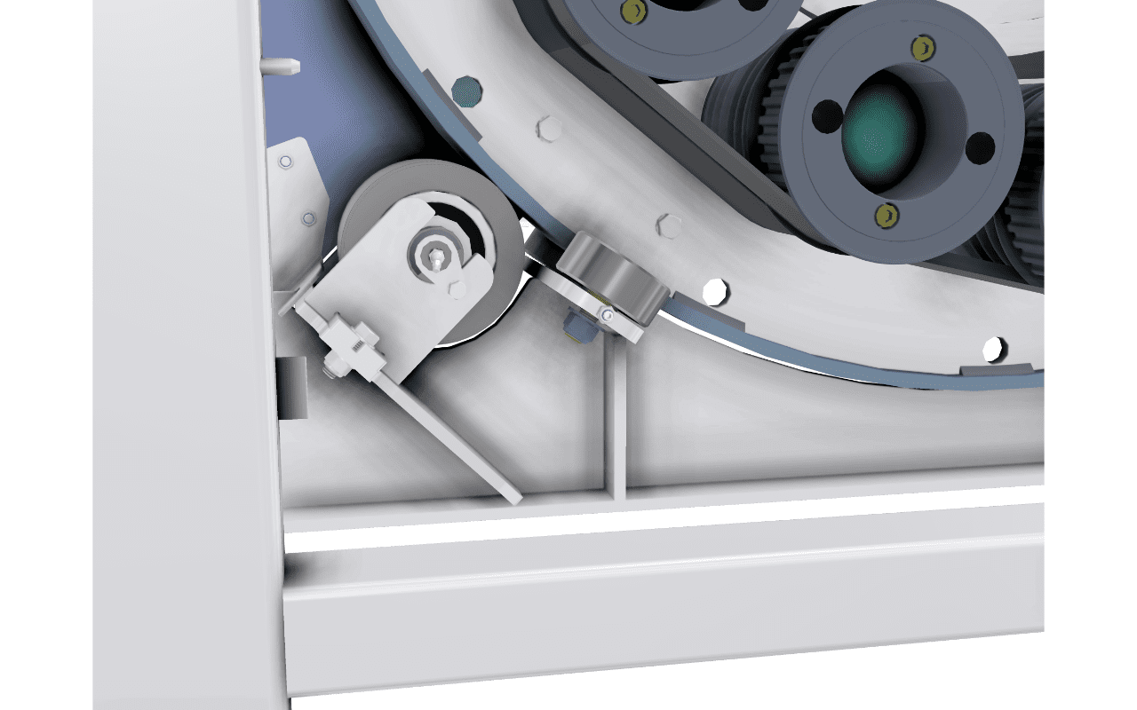 - Sistema de tensión de la correa con bisagras para un ajuste rápido y sencillo de la tensión