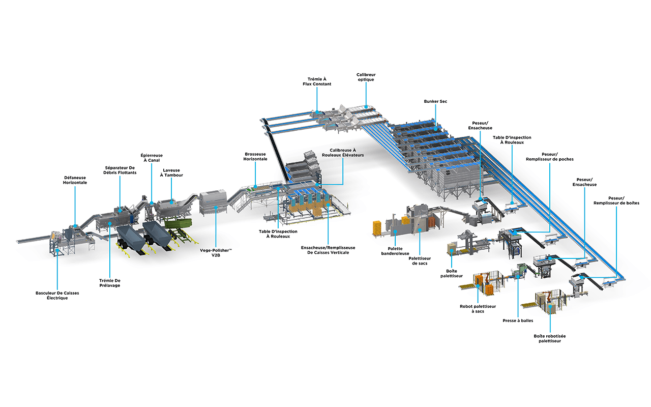 Pour en savoir plus sur les différentes machines utilisées dans cette ligne, veuillez suivre les liens ci-dessous. Pour en savoir plus sur cette ligne ou sur la façon dont Wyma peut vous aider à répondre à vos besoins en matière de post-récolte, veuillez contacter votre représentant régional Wyma.