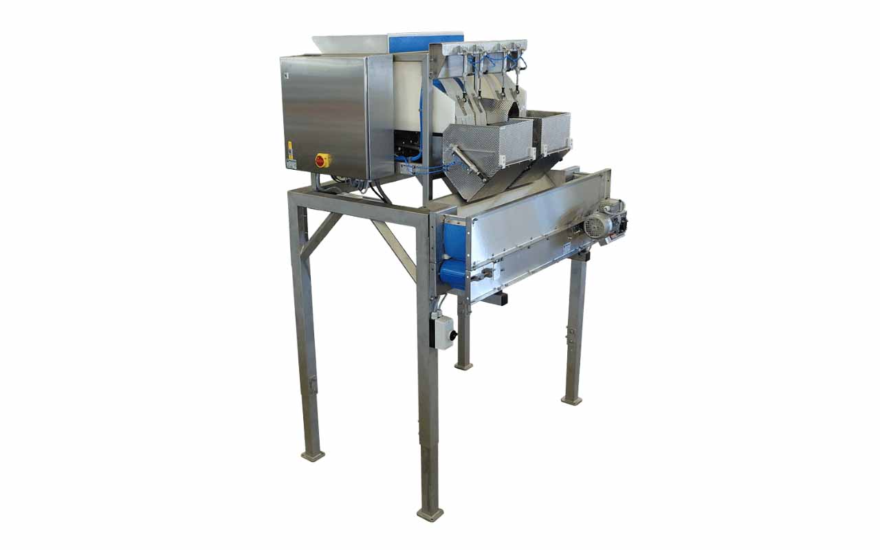 - Different machine designs for small produce (cherries, blueberries etc.), large produce (potatoes, onions etc.), and soft product (apples, pears etc.)