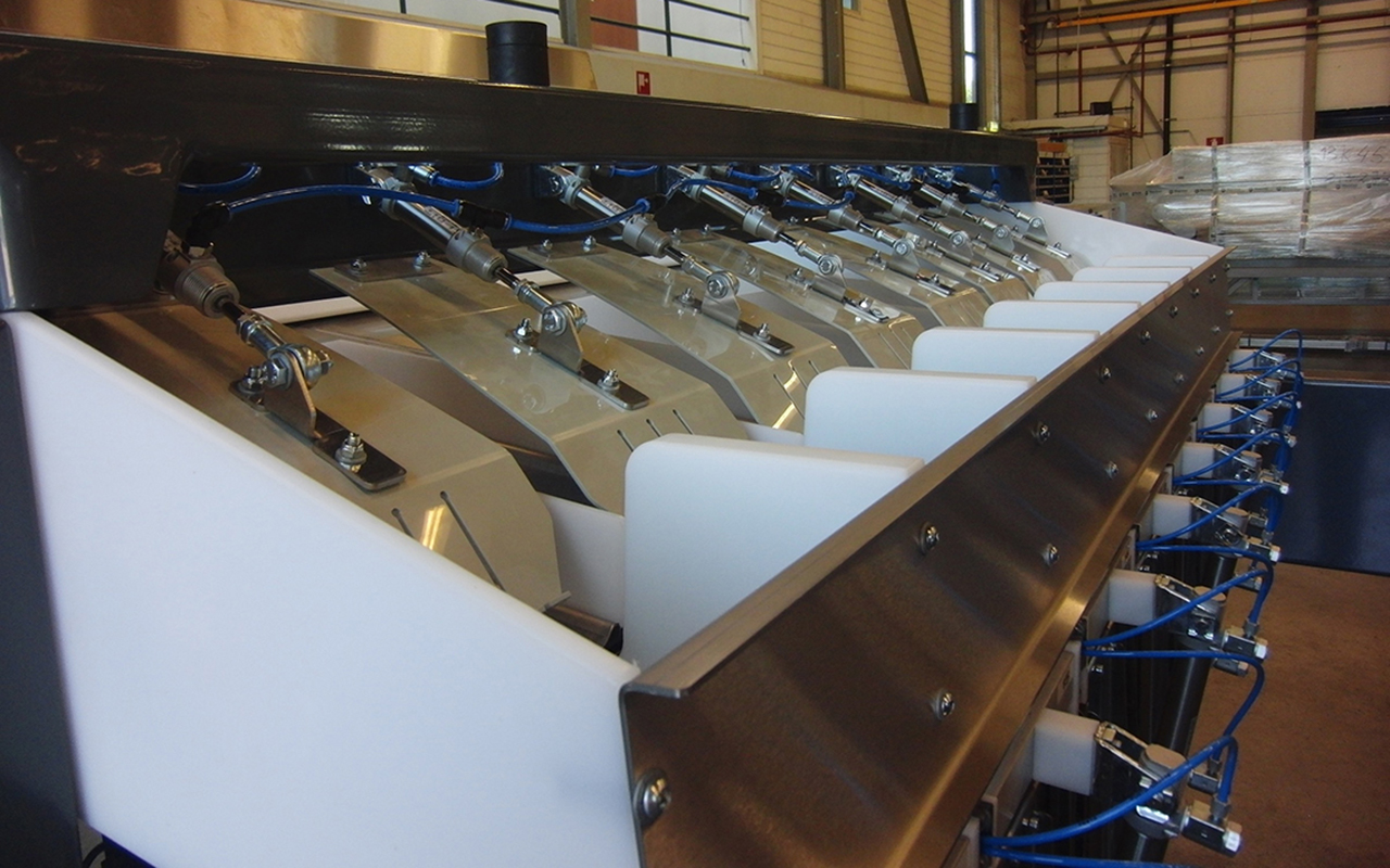 - Weigher equipped with 16 weighing buckets in 2 rows of 8 facing each other